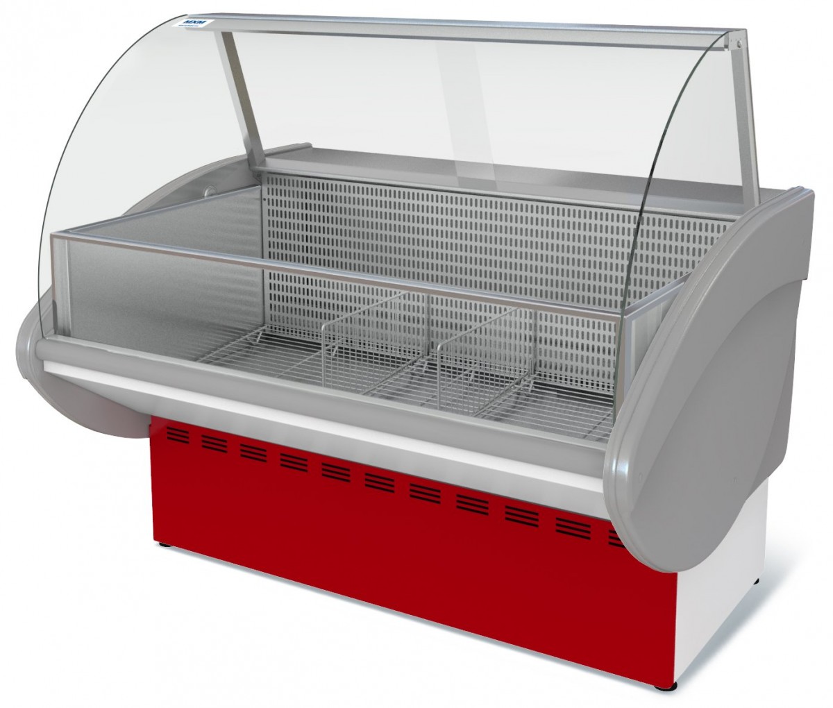 Холодильные витрины Марихолодмаш оснащены гнутым фронтальным стеклом, шторками из поликарбоната. Исполнение всех витрин на ножках, с лицевыми панелями (щитками), декорирующими нижнюю часть.